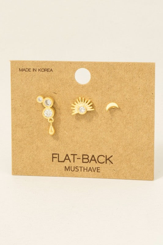 Features: 3 earrings meant to be mixed & matched, flat post back